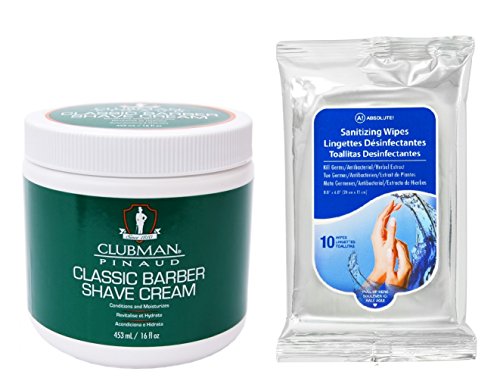 -. Feature : Clubman Classic Shave Cream 16oz / Conditions and Moiturizes / Comfortable for all types of Beard / Improves the razor's glide / Includes: 1 Absolute Hand Sanitizing Wipes 10ct