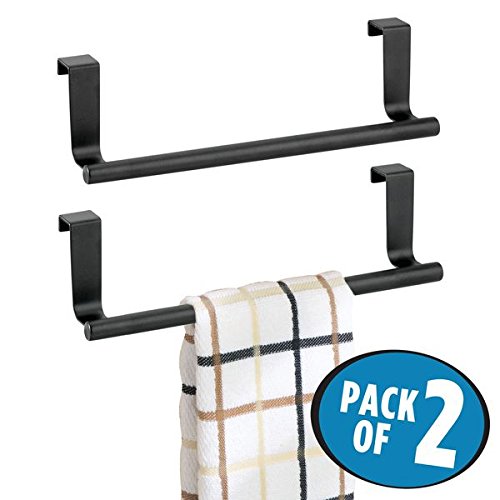 mDesign Over-the-Cabinet Hand Towel Bar Holder for Kitchen Storage - Pack of 2, 9", Matte Black