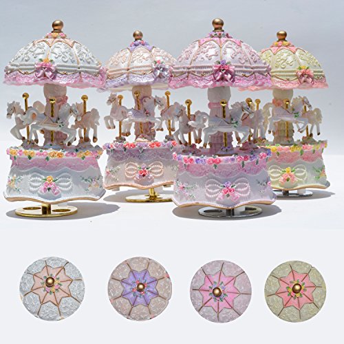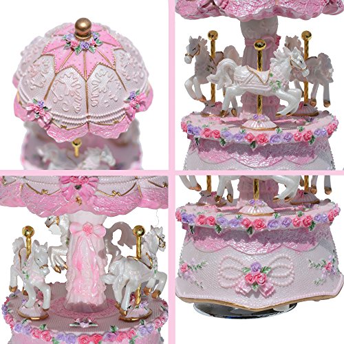 DS-Space Carousel Music Box Luxury Color Change LED Light Luminous Rotating 3-horse Carousel Horse Music Box Melody Carrying You from Castle in the Sky(Castle in the Sky, Pink)