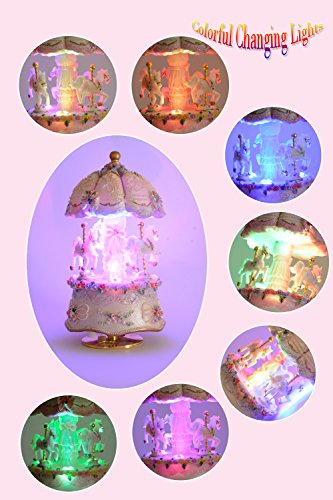 - Colorful LED Light: The music box has LED light gradient function, so the horse can rotate with the music under the shining of colorful LED Light;