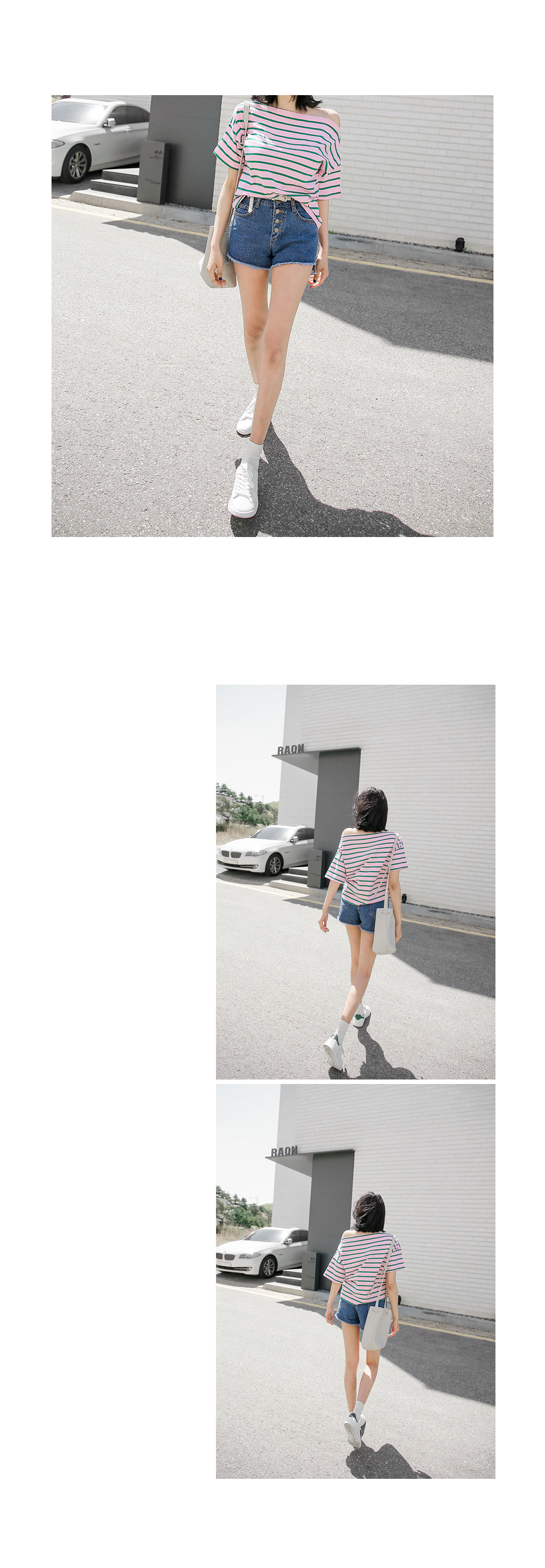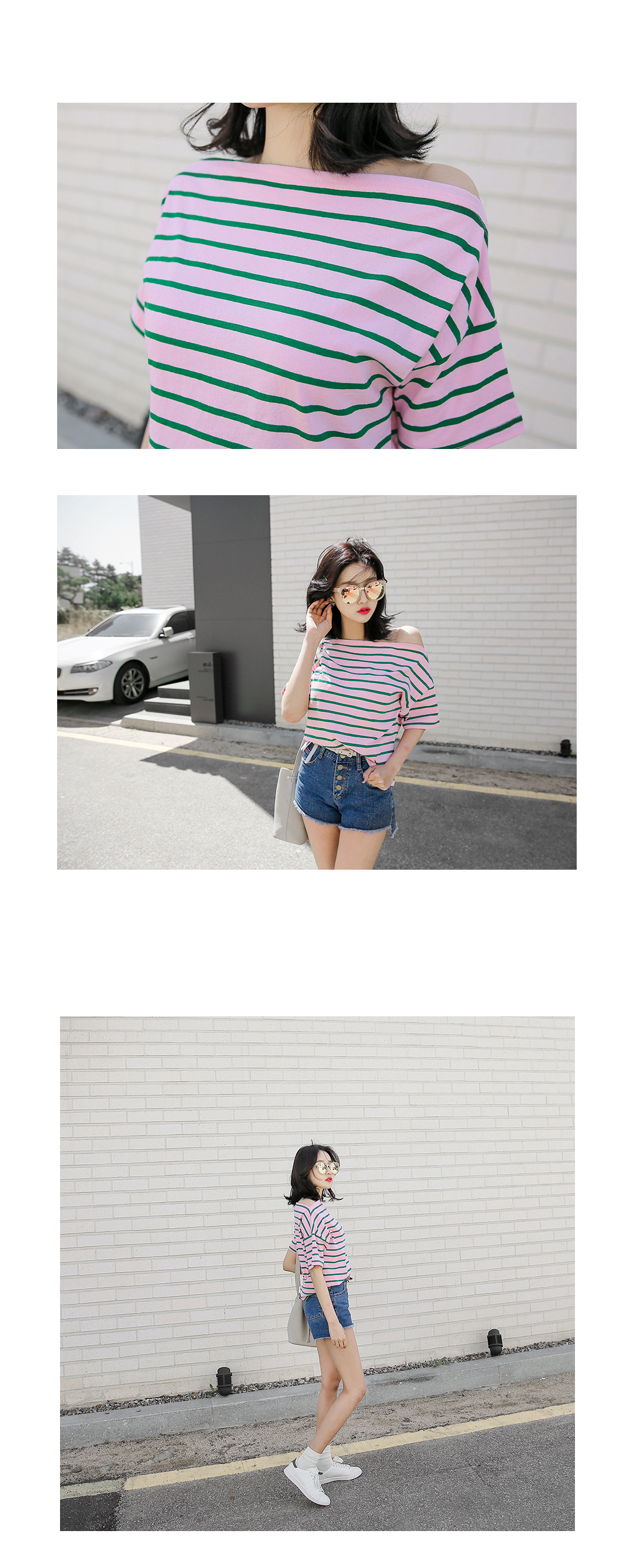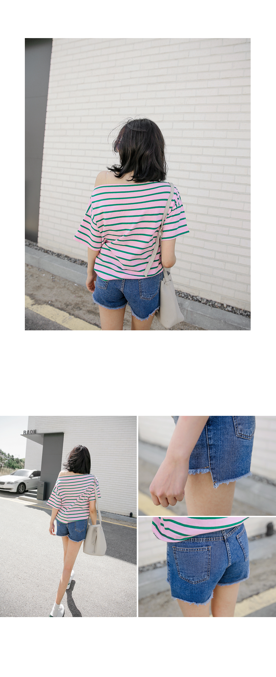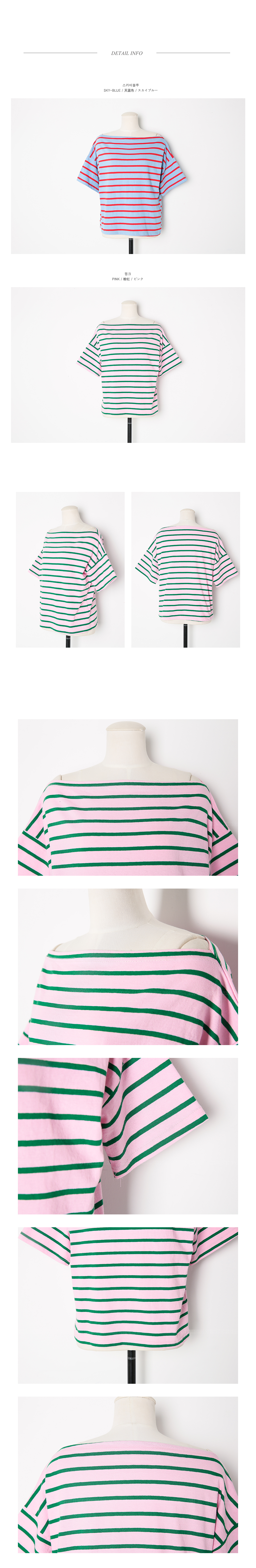 오프숄더 디자인으로 스타일리시한 분위기의 코디매치를 할 수 있는 티셔츠 아이템을 소개해드릴께요^^경쾌한 분위기의 배색된 컬러감이 돋보이는 스트라이프 패턴으로캐주얼한 분위기의 코디매치를 할 수 있는 티셔츠랍니다~팬츠, 스커트 등 다양한 아이템들과 함께 부담없이 데일리룩을 완성할 수 있어요~휴가룩으로 스타일리시하게도 연출이 가능한 티셔츠 아이템이랍니다~