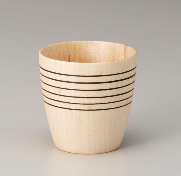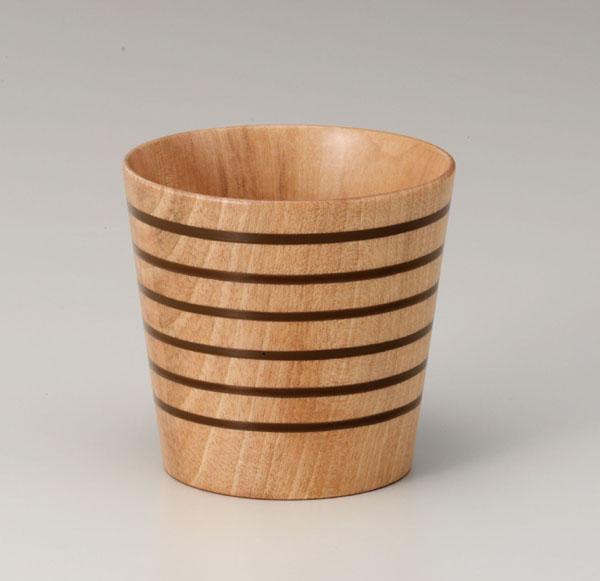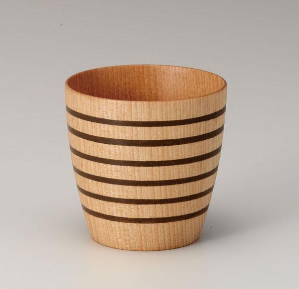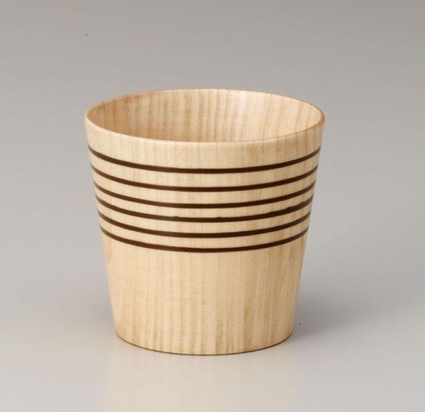 塗り物技術の一つに同心円の文様を彩漆で塗り分ける伝統的な「独楽塗り」があります。その色味や太さを工夫して木目の美しさをひきたたせました。女性の手で持ちやすい小さめのサイズなので、おかわりしながらお茶を楽しめます。