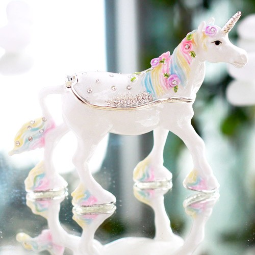 | ジュエリーボックスと言えば、指輪やピアス、ネックレスなどのアクセサリーを入れる引き出し型のケースを思い浮かべる方が多いかもしれません。 ピィアースのジュエリーボックスは、動物や花などをモチーフに作られ、合金製でずっしりとした重さがあります。また高品質のクリスタルガラスを贅沢に使用。まるでジュエリーボックスそのものが宝石のような、高級感溢れる仕上がりです。 小物入れとしても使えるように開閉口には磁石が取り付けてあり、アクセサリーなどなくしやすいアイテムの収納ができます。キラキラと美しく輝く宝石箱は、そのまま飾って楽しめるインテリア雑貨として多くの方に愛されています。 国内トップクラスのジュエリーボックスメーカーであるピィアースは、2004年ごろから本格的に宝石箱の製造を始め、現在のジュエリーボックスはなんと300種類以上。大規模展示会でもご好評いただいており、全国有名百貨店でも販売されています。 自社工場でひとつひとつ丁寧に手作りし、原型作成、研磨、加工、着色、小さなクリスタルガラスの取り付けなども全て手作業で行われるこだわりのハンドメイド品。完成後は厳しい検品の後、丁寧に梱包作業をしお客様にお届けしております。 ピィアース商品は、全国有名百貨店および全国有名宝石店チェーンにてお取り扱いいただいている高品質商品です。 ★自分へのご褒美に…コレクションして並べて飾ると、さらにかわいらしさUP! ★恋人へのプレゼント…中にアクセサリーを入れて、サプライズな贈り物として ★家族への感謝ギフト…お母さんや姉妹へ、日頃のありがとうの気持ちを込めて ★誕生日プレゼント…お友達の喜ぶ顔が見たいから、いつもと違うキラキラギフトを ★小さな女の子へ…まるでお姫様が使っているようなキラキラ宝石箱は女の子の憧れ! |