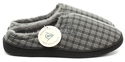 Studio : Dunlop Publisher : Dunlop Binding : Apparel Product Description The men's Dunlop Absolon is a stylish, easy to slip on, house mule slipper that will keep you warm and cosy at home during the winter months. Features a check patterned textile upper with an embroidered Dunlop logo stitched onto the outer side. Also features a soft and cosy faux fur lining and footbed for warmth and comfort. The memory foam footbed offers added comfort. The hardwearing rubber outsole provides grip as well as durability. 0