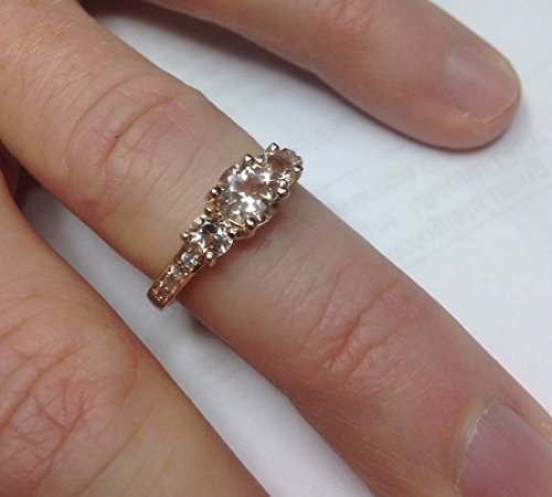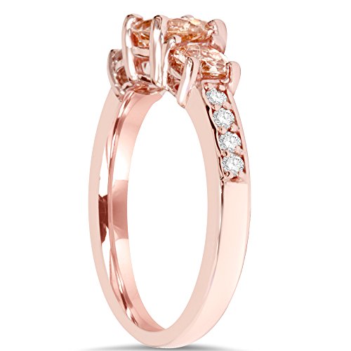 -. Title : 1 1/2CT Morganite & Diamond 3-Stone Engagement Ring 14K Rose Gold