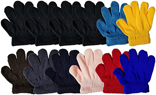 Binding : Apparel Product Description We understand the importance of keeping your hands nice and warm. Introducing a winter magic glove that offers the warmth needed for everyday activities. The magic glove is named due from the fibers used to create this "magical" glove which allows it to stretch more than typical gloves or even fibers. The added stretchiness helps to keep the gloves tight on your hands, helping you to retain body heat closer to the hands and your fingers. This design also allows the glove to be worn by hands of most sizes, and for both boys and girls. Perfect for the commute, driving, outdoor activities, and wearing casually. One size fits most children. With 12 pairs, you will have more than enough to share with the family. Makes a perfect gift and stocking stuffer for the holidays.NOTE - Color may vary slightly. 0
