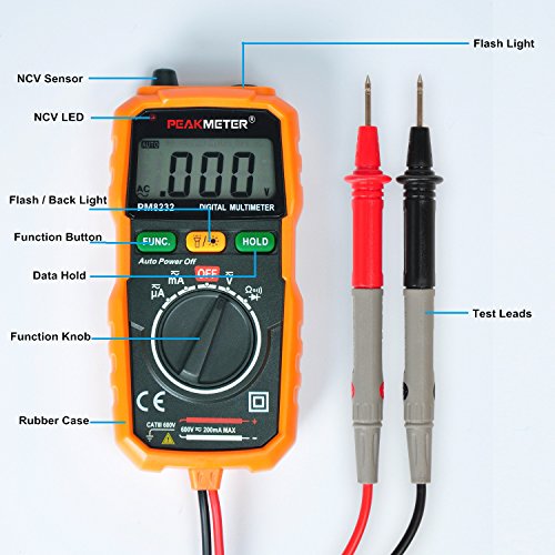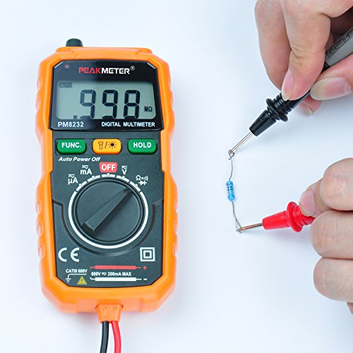 Digital Multimeter, PEAKMETER PM8232 Mini Auto Ranging Digital Multimeter Smart DMM Resistance Test Meter Measure AC/DC Voltage Tester with Test Leads