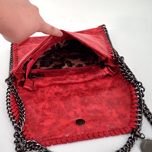 Flap and metal hollow out edge design, blackish metal chain strap