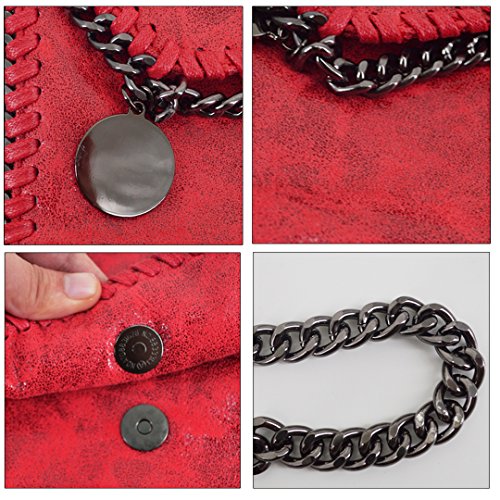 Olivia Women Chain Paillette Large Casual Tote PU Leather Shoulder Bag Clutch Messenger Bag Purse Pouch