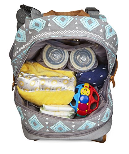 ReleaseDate : 2017-11-07 Studio : Baby Boom Publisher : Baby Boom Binding : Baby Product Product Description The bb gear Backpack Diaper Bag from BABYBOOM is ideal for playdates, all-day adventures, or a peaceful walk in the park. No matter where you go, you'll have everything you need. The grey and mint Aztec print is stylish, fun, and goes with anything. It's also incredibly functional, because it's designed with both parents and babies in mind. You'll be amazed at the spacious interior, and how organized you can be - even on the most hectic day. With a snap you can get to the convenient front pocket for all your personal belongings like keys, sunglasses or a phone and with the spacious interior of the bag all your baby essentials are in easy reach. If a special toy or pacifier slips to the bottom, no problem. You can grab it as soon as your little girl or boy wants it. The elastic pockets keep bottles snug, so they stay put. There are also three exterior pockets to store small items and two side bottle pockets to keep you organized. As an extra bonus, the bag comes with its own changing pad and accessory pouch. Sturdy stroller loops keep your bag securely fastened to your stroller. And as roomy and packed with features as it is, this bag is also very light weight and easy to carry, with adjustable padded shoulder straps. Just throw it over your shoulder and go. 0