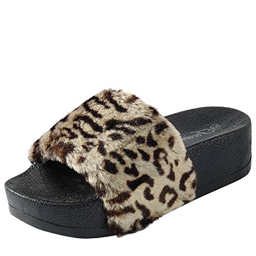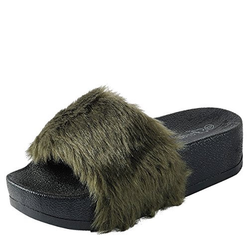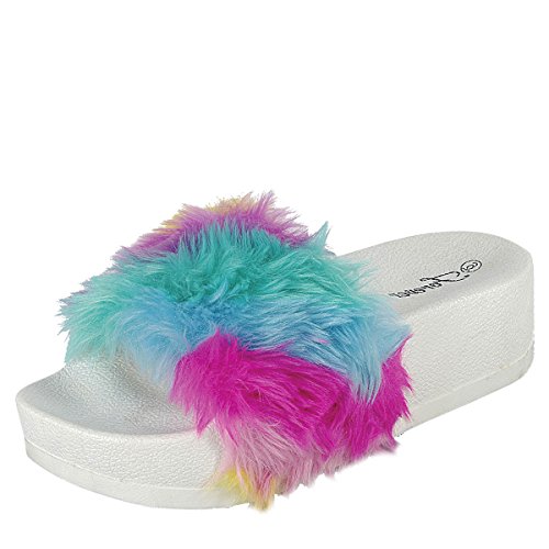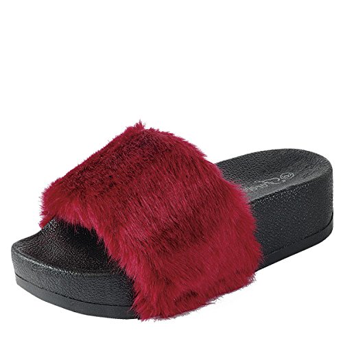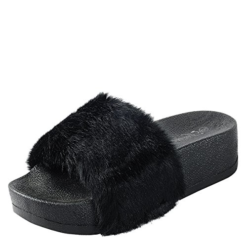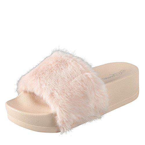 Binding : Apparel Product Description Introducing a slide you won’t be able to take your eyes off! Team them with relaxed denim-cami-combo, and watch your look become cooler in a hot second before your eyes! This furry sandal features a soft faux fur band with multi-size pearly beads accent, open toe, and molded cushioned foot-bed for comfort 0