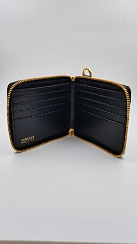 Product Description Authentic Versace men's wallet. Nylon baroque design with full secure zip around closure. Medusa logo.8 interior credit card slots. 2 open slots. 1 large currency slot. Attachable black Greek key design strap included. Original box included. Guaranteed authentic. Measures 4.5 x .75 x 4" 0