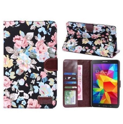 G.click Tab4 7.0 Inch T230 Case, Anchor - Fashion Cute Synthetic Leather Flip Holder Support Case with Soft TPU Cover Skin for Samsung Galaxy Tab 4 7.0 Sm-t230nu 7-inch Tablet (White Flower)
