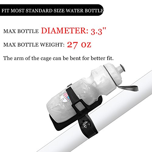 EXPANDED SIZE - This quick release bottle cage is made with advanced plastic steel, fits for most standard-sized water bottles. 2.5'' - 3.3'' bottle in diameter is perfect fit, and 27 oz is max holding weight.