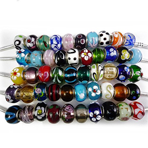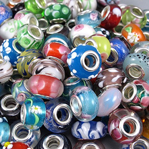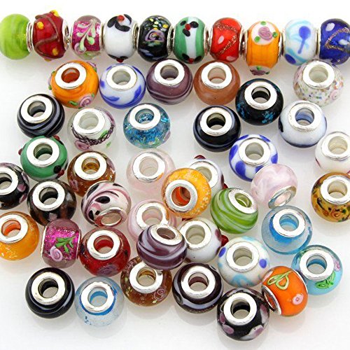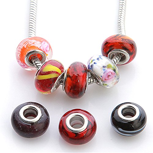 Murano Glass Charm Beads Fit European Charm Bracelet, each Bead is Made by experienced Murano Glass lampwork Workshop.-We Choose Randomly From More Than 400 Styles in Our Stock.