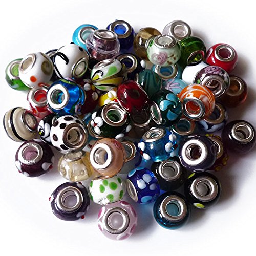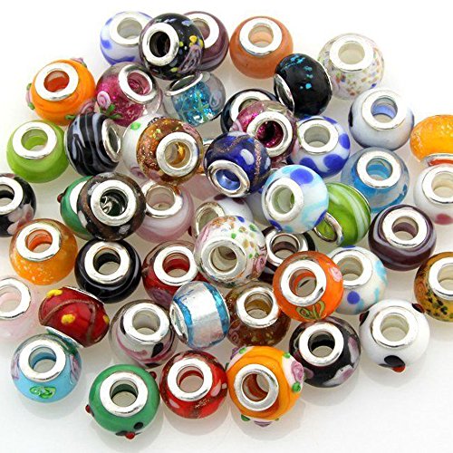 Mix Murano Glass Beads Fit European Charm Bracelet Silver Color Spacer by eART 100 pcs