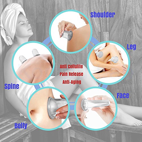- ★ THE GODSEND FOR CELLULITE TREATMENT - Dealing with stretch marks or cellulite? This anti-aging cupping set is designed with your utmost convenience in mind to improve collagen and skin tone on your body and face. The kit includes 4 cupping massage set that has a strong suction mechanism to provide a therapy on your body for a beautiful glowing complexion. Use on your face to reduce under eye bags, wrinkles, scars, spider veins, cellulite and expression lines