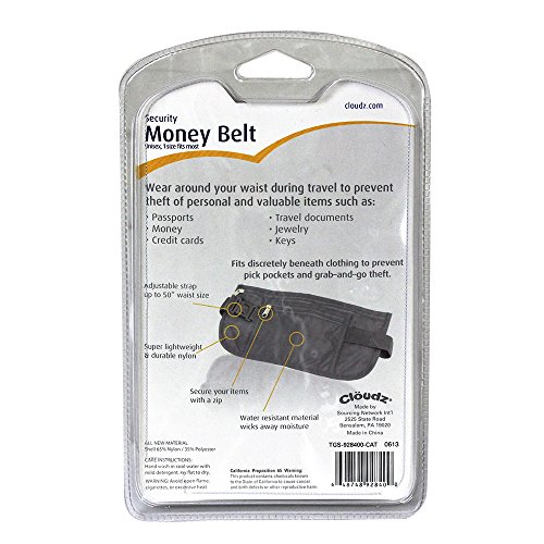-. Binding : Apparel -. Brand : Cloudz -. EAN : 0648748928400 -. Feature : Travel with Peace of Mind Protecting your Passports, Money, Credit Cards, Jewelry, Keys, etc. / Wear Underneath or Over Clothing. Secure your Items with a Zip / Fits Discretely Beneath Clothing to Prevent Pick Pockets and Grab-and-Go Theft of Personal and Valuable Items / Includes an 50" Adjustable Strap. / Super Lightweight and Durable Anti-Rip Nylon Construction. Water Resistant Material Wicks Away Moisture -. Label : Cloudz -. Manufacturer : Cloudz -. Model : TGS-928400-CAT -. MPN : TGS-928400-CAT -. PackageQuantity : 1 -. PartNumber : TGS-928400-CAT -. ProductGroup : Apparel -. ProductTypeName : BAG -. Publisher : Cloudz -. Studio : Cloudz -. Title : Cloudz Security Money Belt / Waist Pouch -. UPC : 648748928400