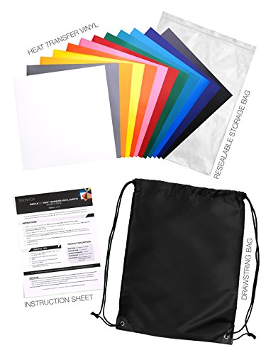 Trionyck SimpleCut “DESIGN YOUR OWN DRAWSTRING BACKPACK” Bundle Pack – Includes 12 Heat Transfer Vinyl Sheets in Assorted Colors + Drawstring Backpack