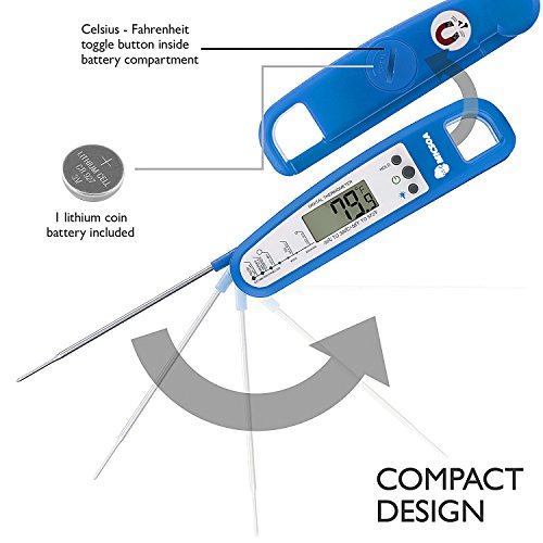 - Compact and Easy to Use - Simple and stylish design. The cooking thermometer is foldable and feature a small handle. You can attach it to your keychain so that you’ll always have it handy to use. Integrated magnet for convenient storage on refrigerators or ovens