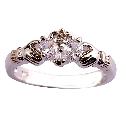 Empsoul 925 Sterling Silver Natural Novelty Created White CZ Irish Claddagh Friendship & Love Heart Hand Ring
