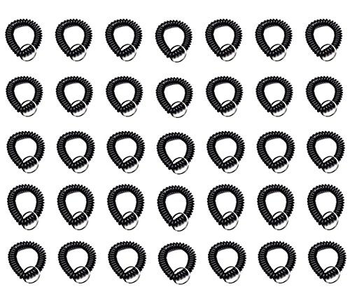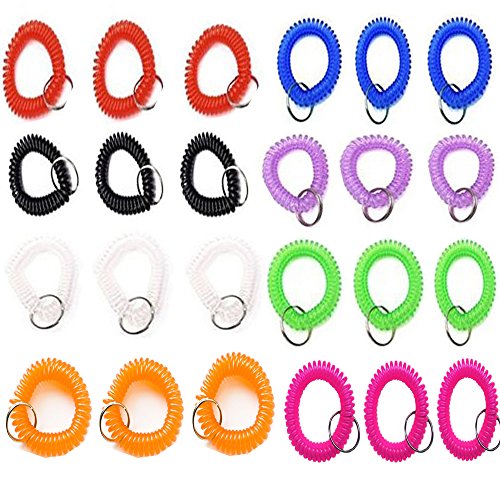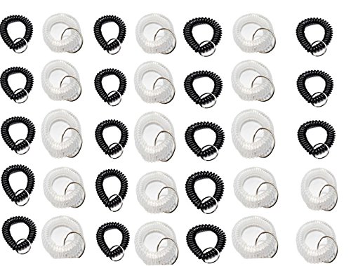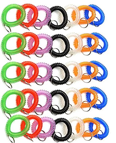 Pack of 35 Stretchable Plastic Bracelet Wrist Coil Wrist band Key Ring Chain Holder Tag (7 COLORS MIXED)