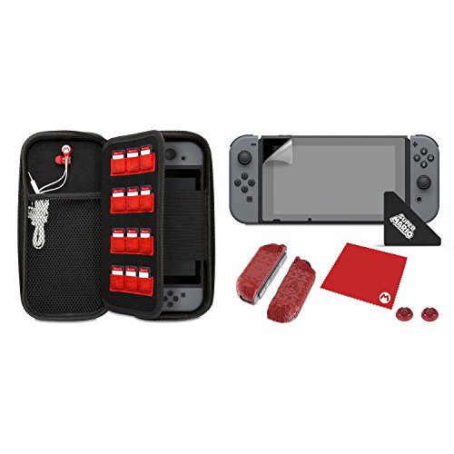 PDP Nintendo Switch Super Mario Brothers Starter Kit with Travel Case, Screen Protector, Joy Con Guards and Earbuds, 500-031
