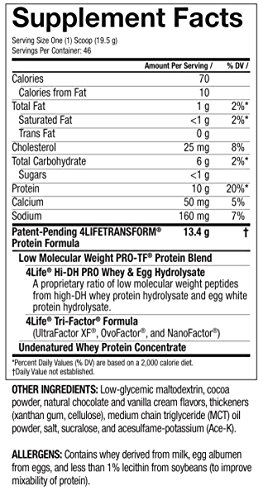 -. Feature : Includes a critically essential protein source for your body plus 300 milligrams of 4Life Transfer Factor® in every serving. Stimulates fat burning markers from visible/surface fat by up to 203% for up to three hours. Stimulates fat burning markers from "bad fat" stores by up to 564% for up to three hours. / Reduces hunger craving markers by up to 62% for up to three hours. Stimulates muscle protection synthesis (muscle growth) by up to 74% for up to three hours. Is gluten-free and contains zero grams of lactose. / Features highly concentrated, ultra-absorbable, and easily digestible Low-Molecular Weight PRO-TF® Protein Blend. Includes only 70 calories per serving. Provides over 4,900 milligrams of essential amino acids (EAAs) and over 2,350 milligrams of branched chain amino acids (BCAAs). / Contains optimal 2:1:1 BCAA ratio to increase protein synthesis, boost energy levels, burn fat, and lessen fatigue during and after exercise. Supports increased sports performance and recovery. Supports healthy blood glucose levels. Offers a more comprehensive amino acid profile than whey, soy, rice, pea, or casein protein / As observed in the pre-clinical research study conducted at Auburn University's Molecular and Applied Sciences Laboratory in the College of Education, School of Kinesiology under fasting and controlled conditions [Mobley CB et. al., J Int Soc Sports Nutr 2015, 12:14]. Actual results may vary