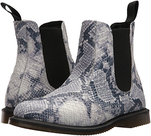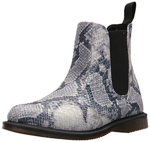 -. Binding : Apparel -. Brand : Dr. Martens -. Department : womens -. Feature : Made with Asciano, a lightweight soft leather with a textured reptile design / Constructed on the iconic, durable Dr. Martens air-cushioned sole / This is a Goodyear-welted product / Retains classic Doc's DNA, like grooved sides and scripted heel-loop / Good slip resistance and abrasion -. Label : Dr. Martens -. Manufacturer : Dr. Martens -. Model : R23196051 -. PackageQuantity : 1 -. ProductGroup : Shoes -. ProductTypeName : BOOT -. Publisher : Dr. Martens -. Studio : Dr. Martens -. Title : Dr. Martens Women's Flora Snake Fashion Boot