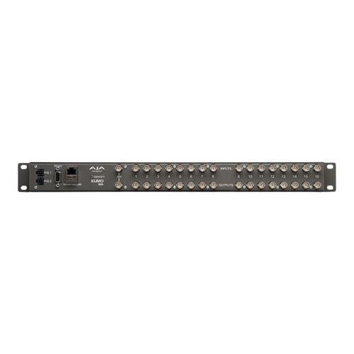 Studio : AJA Publisher : AJA Binding : Electronics Product Description AJA Video Systems brings you the KUMO 1616, perfect for medium-sized facilities and mobile trucks and it's just the right size for combining multiple cameras, monitors, editing systems, tape decks and file-based recorders into a seamless workflow. Compact, robust and built for critical production environments, KUMO SDI routers offer flexibility and quality that exceeds SMPTE specifications at an unprecedented price. KUMO compact SDI routers provide powerful signal control and support full broadcast specifications over SDI, HD-SDI, and 3G SDI, with quality that exceeds SMPTE specifications. The super-compact 1RU and 2RU formats are just a few inches deep, making them a perfect fit for any broadcast, production, or post production environment, from mobile sports trucks and edit suites, through to corporate video installations or live theatrical A/V rigs. The KUMO 1616 supports 16 3G SDI inputs and outputs. 0