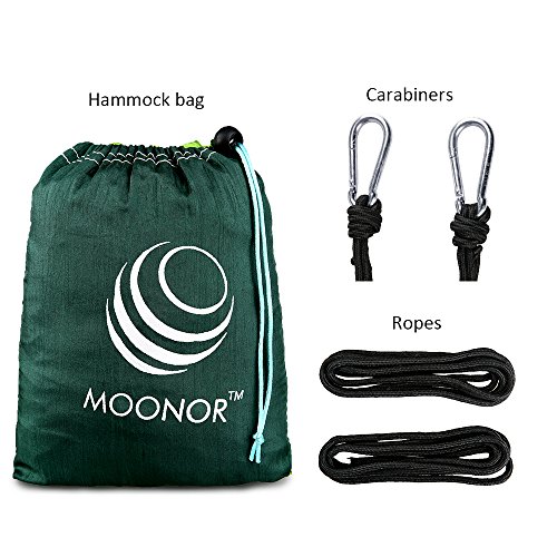 -- Super Lightweight And Easy Setup: The backpacking hammock can be used for camping, travel, beach, yard. You will have everything you need for quick and easy hanging setup. It will take less than 3 minutes to hang your camping hammock on a tree or nearby objects using the ropes, strips and carabiners. The sack also doubles as a convenient storage bag when using the hammock!
