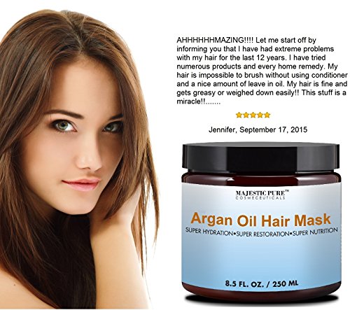 Majestic Pure argan oil hair mask restores and conditions weak, damaged, and over-processed hair. This hydrating Mask is a rich and creamy repair mask designed to hydrate and help repair damaged hair. This high performance Moroccan oil restorative hair care product contains a balance of all natural extracts that promotes improved texture, softness, manageability, and shine. Majestic Pure argan hair mask is the highest quality hair care product on the market. It is suitable for all hair types. Click the button at the top of this page to buy with confidenceFeature