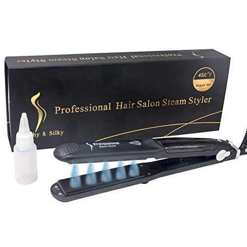 - Professional Steam Salon Hair Straightener: This hair straightener is designed with the newest steam function to straighten thick or coarse hair, makes your hair silk smooth and the frizz. Your hair will be moisture and shine back by using the cold steam conditioning while you straighten
