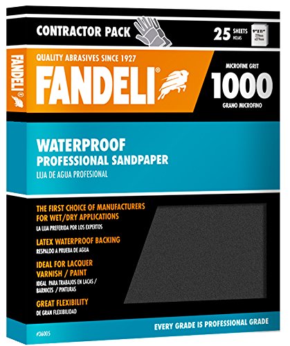 Fandeli 36005 1000 Grit Waterproof Sandpaper Sheets, 9" x 11", 25-Sheet