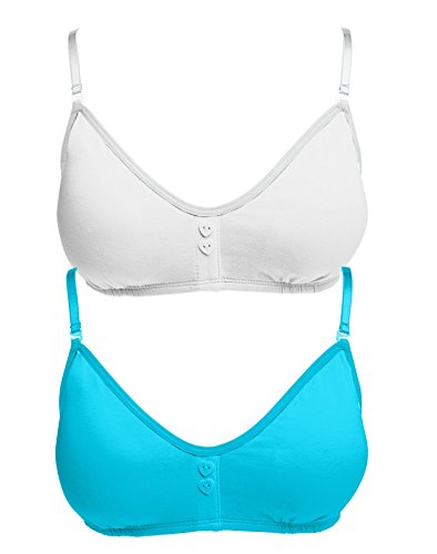 The perfect bra for her tween and early teen years.Soft cotton with a hint of spandex for stretch.Modern scoop neckline.Removable foam cookies for two ways to wear.Adjustable straps convert to racerback.Convenient Multi-pack.Feature