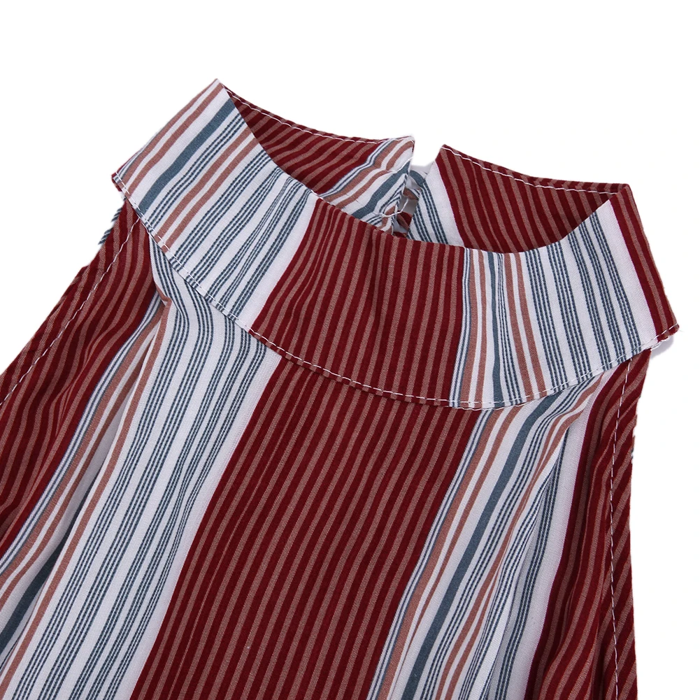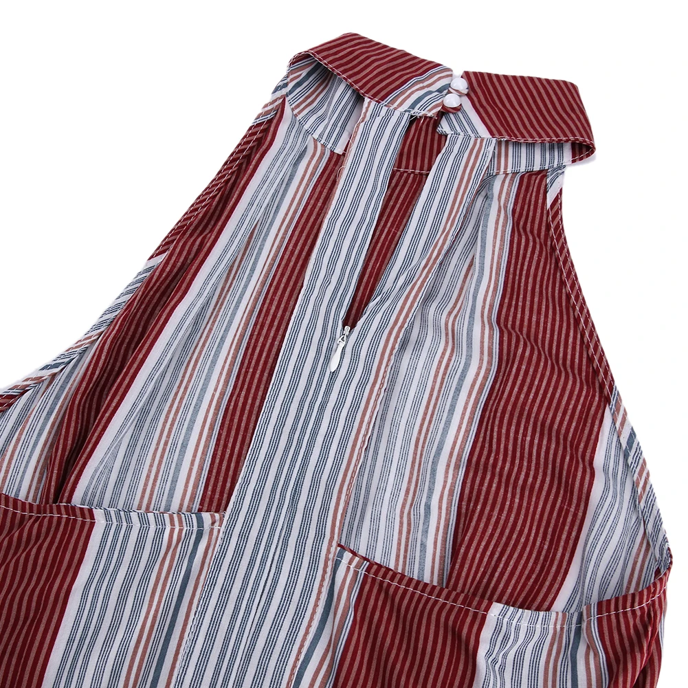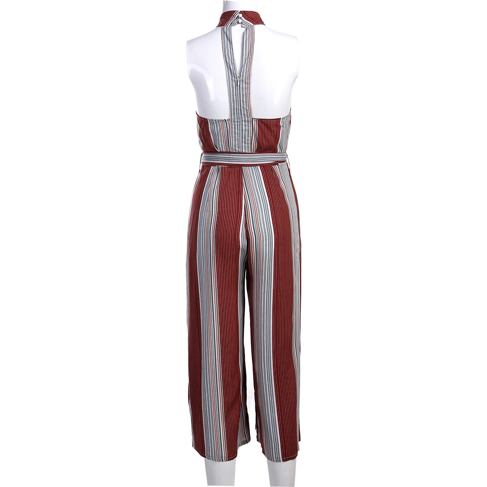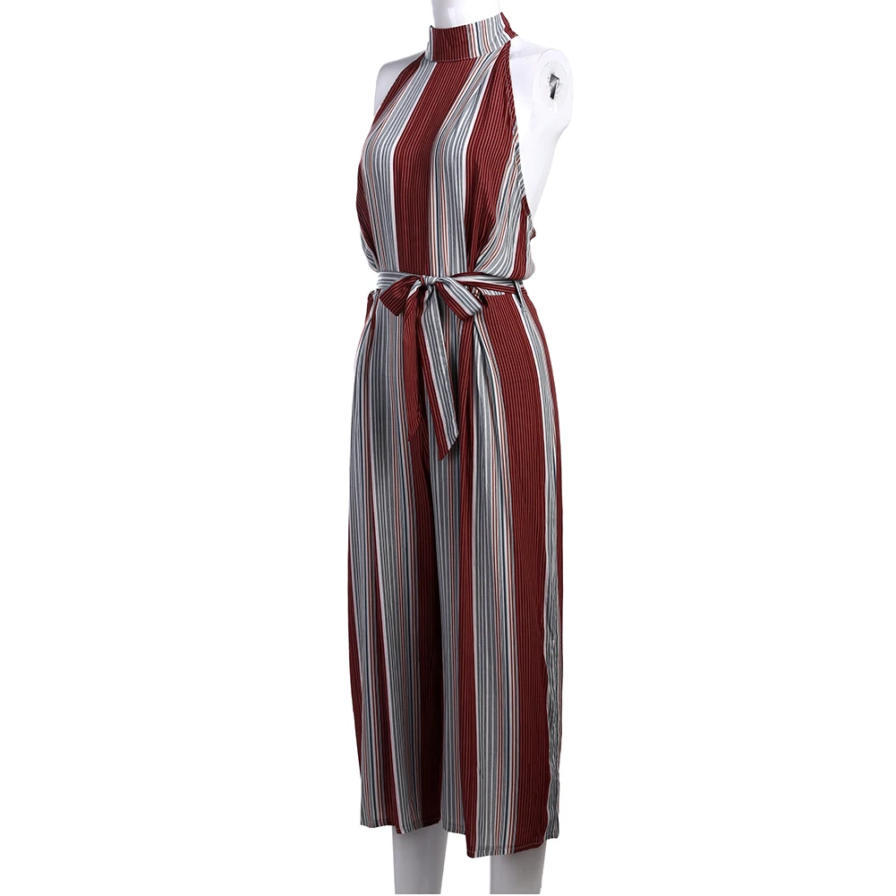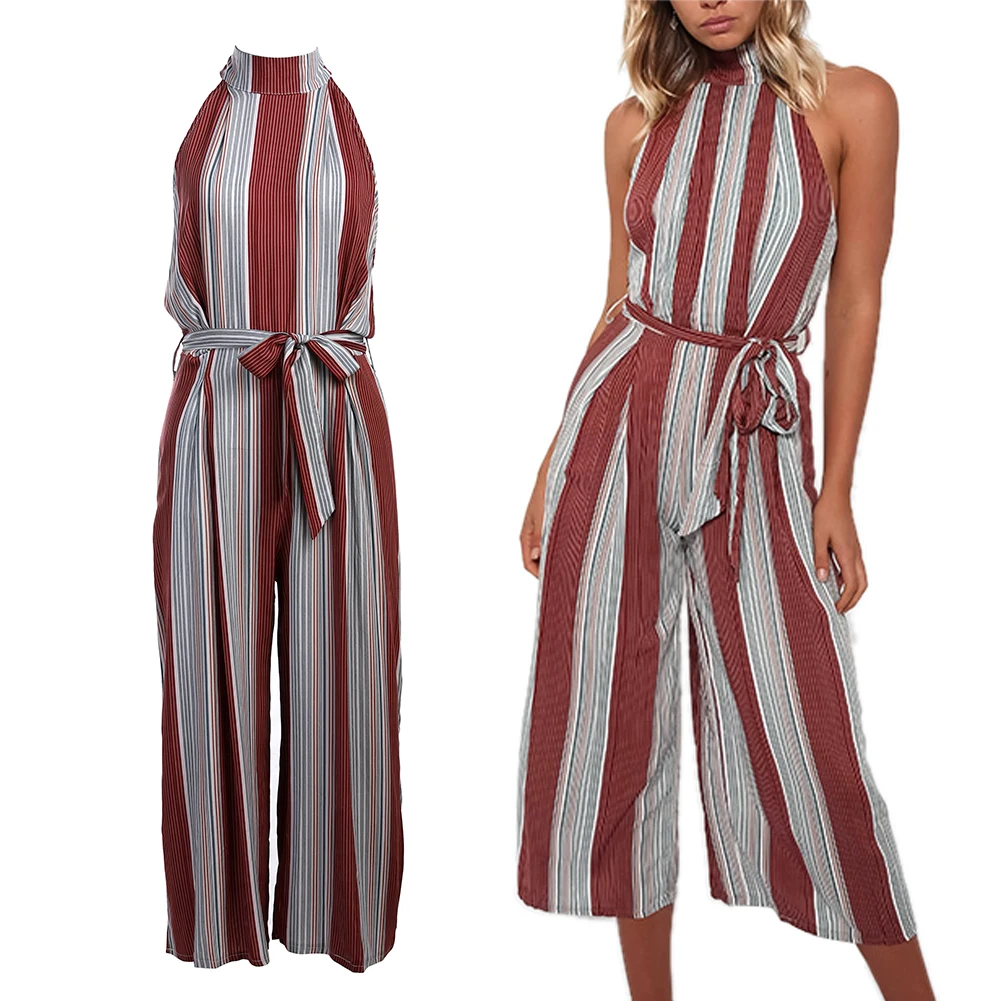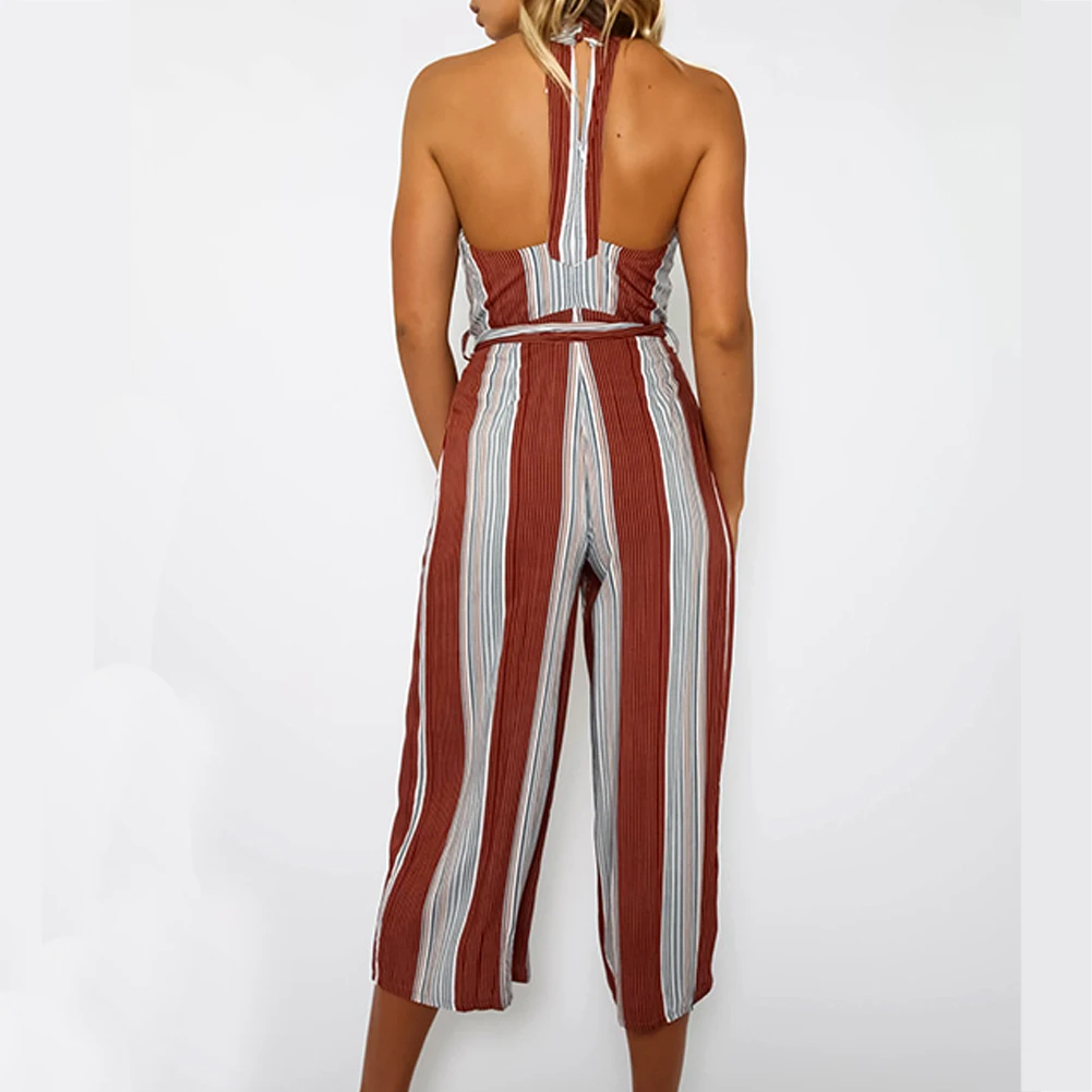 High Waist Women Jumpsuit:Sleeveless Halter Striped Loose Playsuit