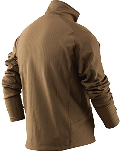 Product Description Mid-weight shirt with pullover design and zip through collar. Plaited grid jersey knit fabric. Warm, breathable insulation for use in cold temperatures. Serves as a layering system for colder environments. Stretches to allow for increased comfort. 0
