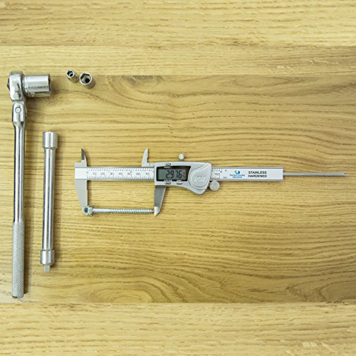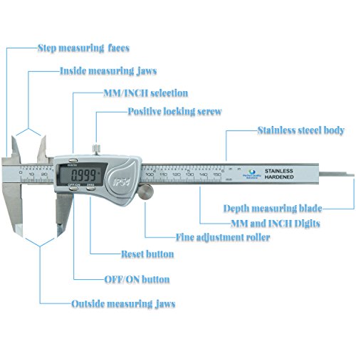 Digital Vernier Caliper IP54 Made of Hardened Stainless Steel by PQS Large LCD Screen-6"/150mm-Auto Off Provides Precision Measurement in Inches and Metric Easy to Read and Use