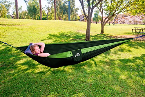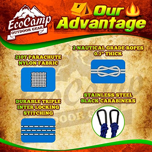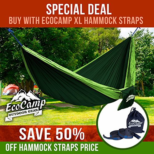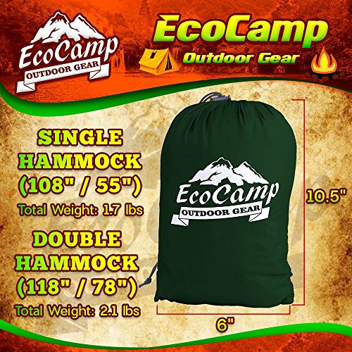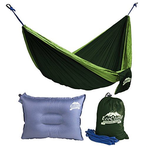 EcoCamp Portable Camping Hammock Single & Double - Lightweight, Heavy-Duty, Parachute Nylon-Easy Hanging Outdoor Hammock - Free Bonus Camping Pillow - for Backpacking, Travel, The Beach, Your Backyard