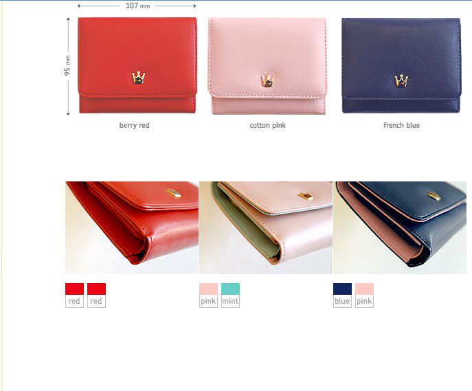 Blue: Internal pink, small blue purse