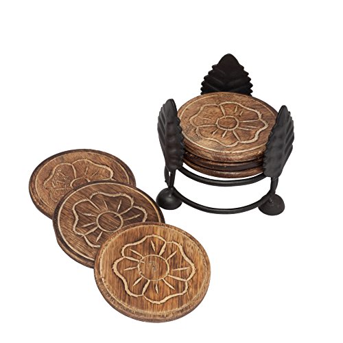 -. Feature : What's in the package: 6 handmade retro coasters and 1 round metal coaster holder. Coaster size: 3.75 Inch in diameter / Not only does it work as a functional coaster set, but also a unique decorative curio for your bar / An eye catching accessory for your bar, dining table, coffee tea lounge, garden, patio, or office and a unique gifting idea too! Perfect Gift for House Warming/Anniversaries/Birthdays / for all occasion / For tea cups, coffee mugs, beer cans, water glasses, juice tumblers, etc. It will NEVER stick to the bottom of your bottles or glasses - great for everyday use / Made to perfection by Indian artists using vintage craft skills