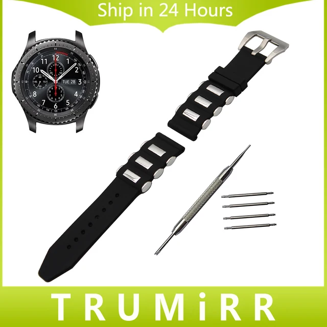 | [해외]22 미리메터 실리콘 고무 시계 밴드 samsung gear s3 클래식 프론티어 손목 스트랩 더블 브러쉬 스테인레스 스틸 버클 팔찌 |