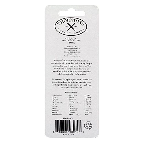 - Title : Thornton's Luxury Goods Parker Style Ballpoint Pen Refills, 1.0mm, Medium Point, Black Ink - Pack of 5