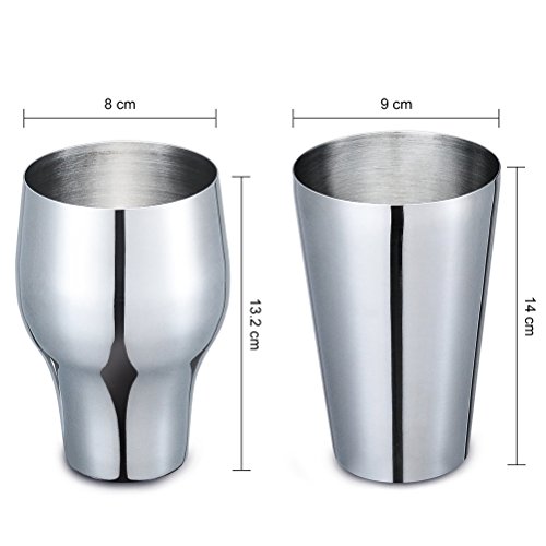 *Can make any drink including mojitos,martinis,and other mixed drinks. *Type: Boston Cocktail Shaker *22 Oz.Shaker 18 Oz.Shaker *Color: Silver *Material: 100% Stainless Steel *Martini Shaker is dishwasher safe *No rust nor leakage *Perfect for:Home,Bar as a Gift *FDA Approved.