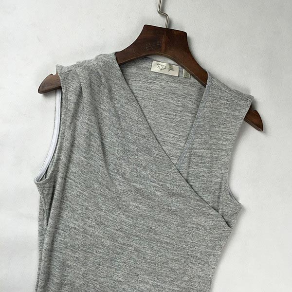 カシュクールネックのノースリーブニット素材ワンピースです♪