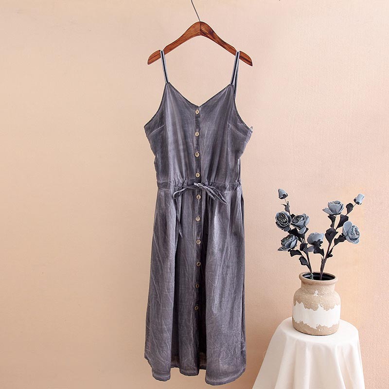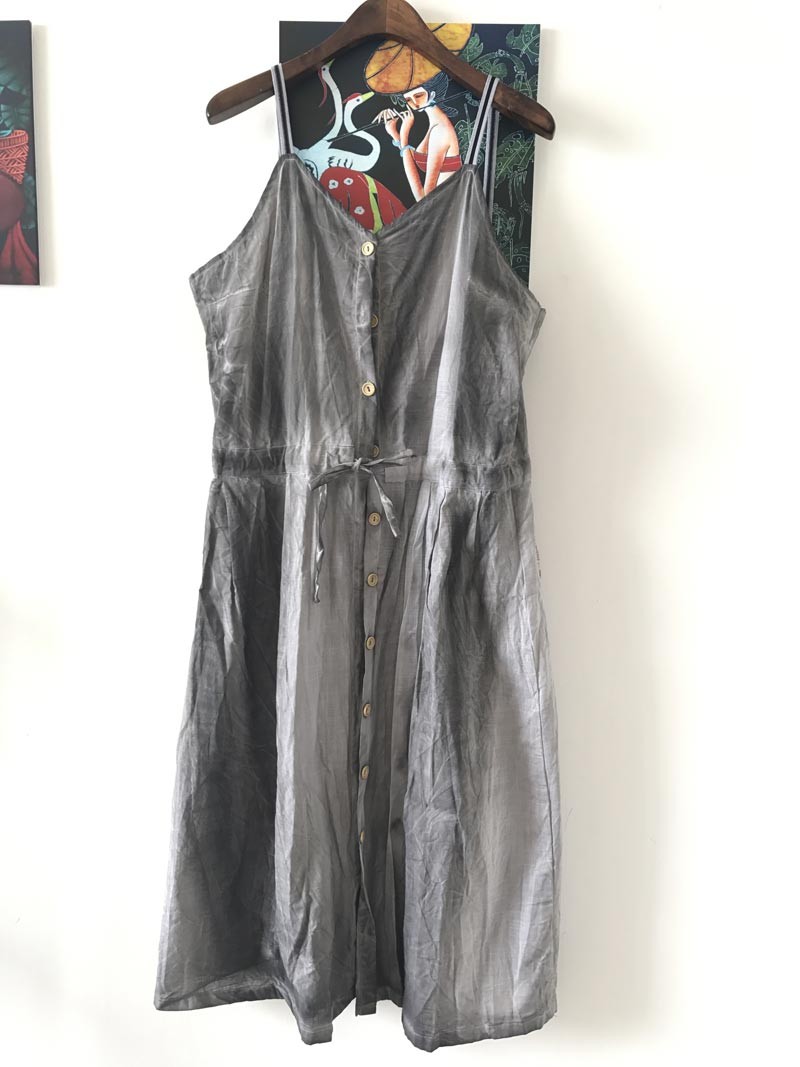 コットンムラ染めの雰囲気のある前ボタン止めキャミワンピース♪