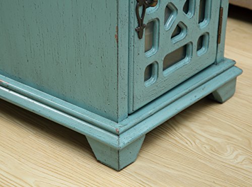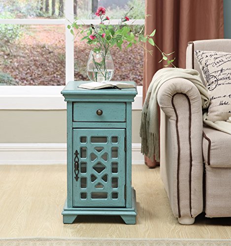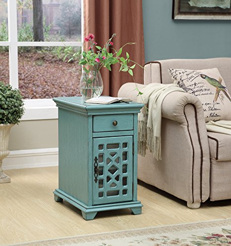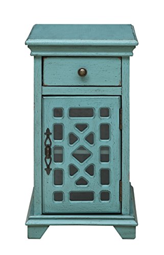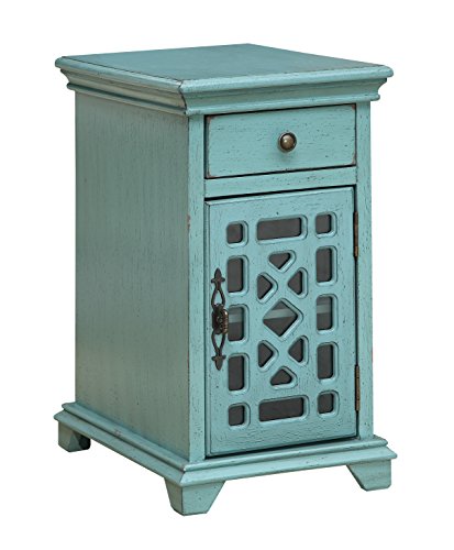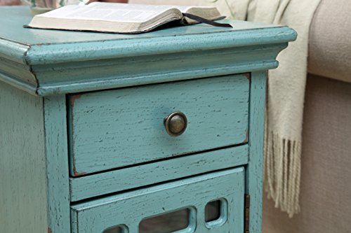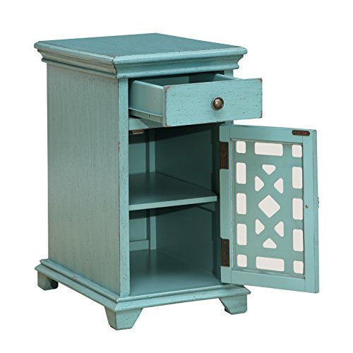 Treasure Trove Accents 17579 Drawer One Door Chairside Cabinet, Bayberry Blue Rub-through