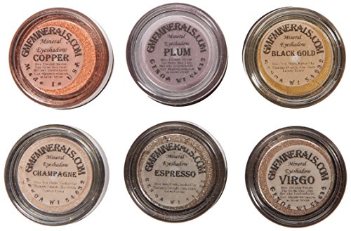 - This six-piece eye shadow collection comes in five gram jars. Each jar holds a net weight of 1 gram/.035 oz.