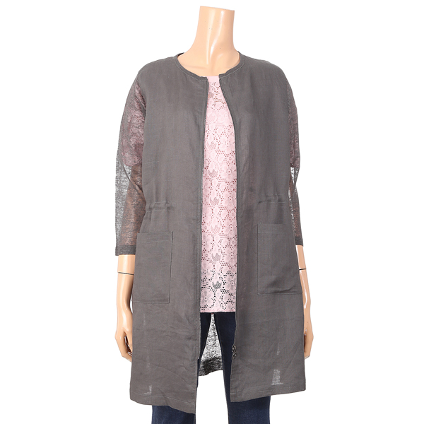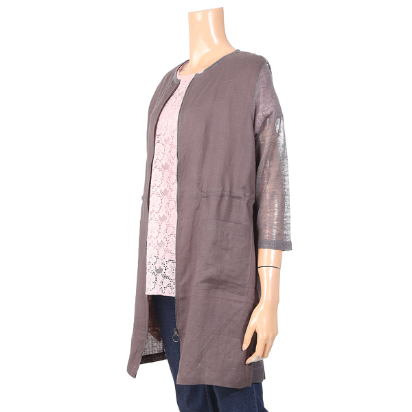 칠부소매 린넨 지업스타일 롱 가디건입니다