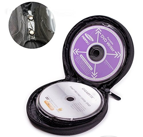 Ensure Life Round CD Wallet Case DVD Disc Holder Bag Zippered Sleeve Organizer for Car Home